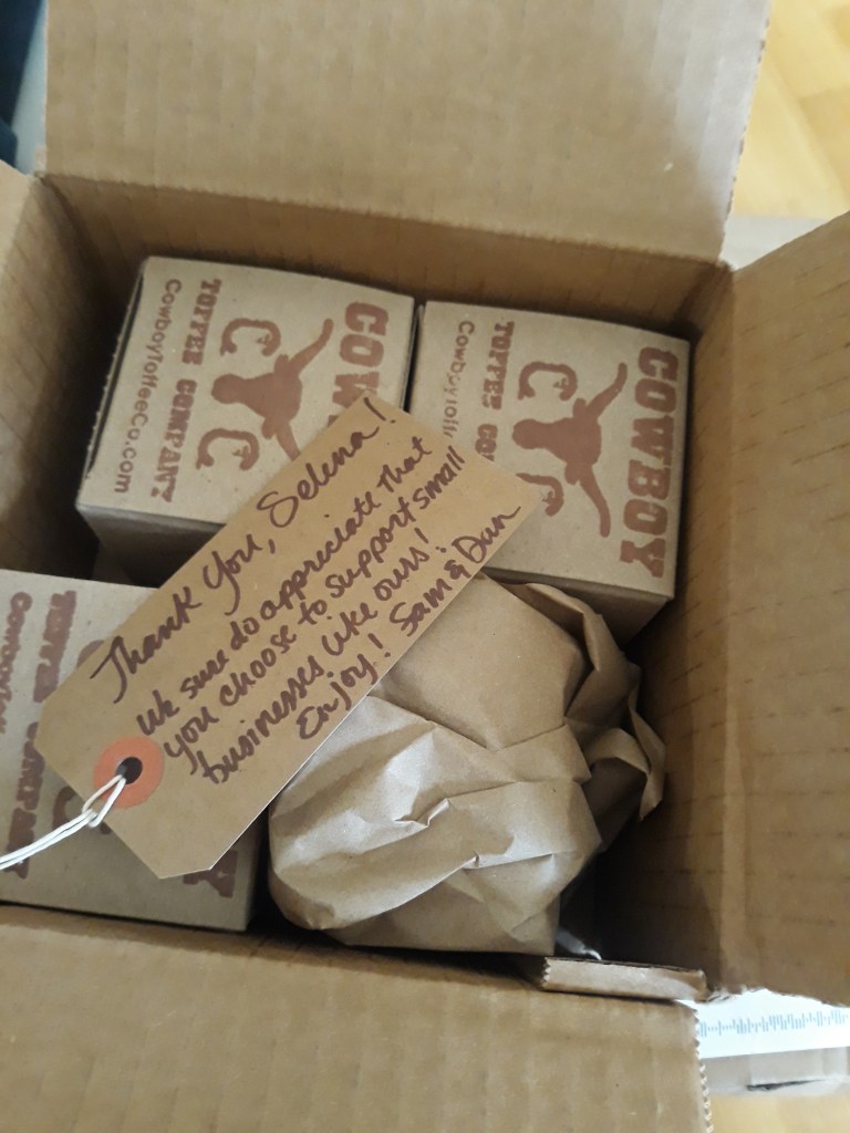 So if you know me you know, I LOVE sweets and I also love all things cowboy so when i saw an add for Cowboy Toffee I was sold! They are small business out of Texas and it is delicious!