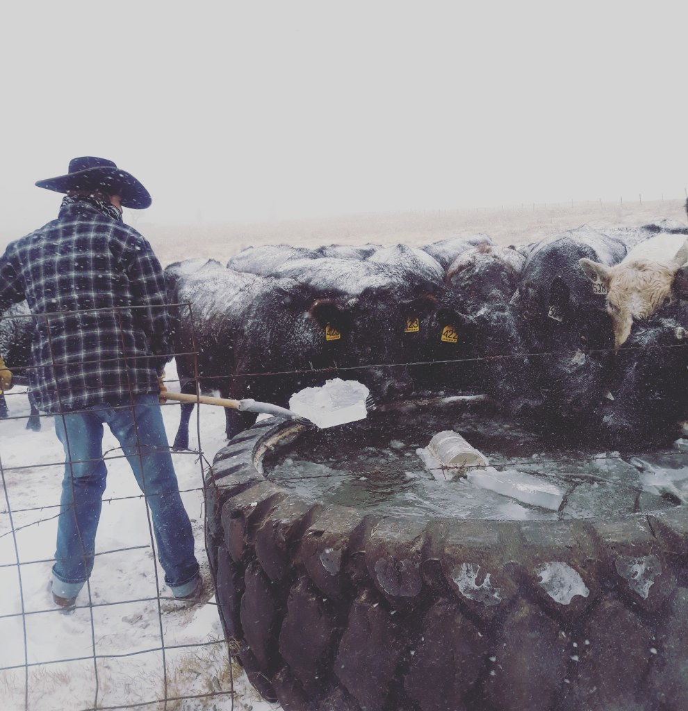Then the storm hit and it was just as hard as they promised. It was pretty depressing to look at the forcast on my phone to not have any days above freezing. We spent long days breaking ice, pitching ice out of the tanks so they would stay open for a little while longer and feeding extra. We were already physically spent and then the snow came and added just that much more work. Trudging through the snow to open gates and do the regular chores just added insult to injury and then digging the feed pickup out of the snow drifts because although it didn’t look like a good idea to plow through the snow drift we didn’t have any other option to get to that set of cows.